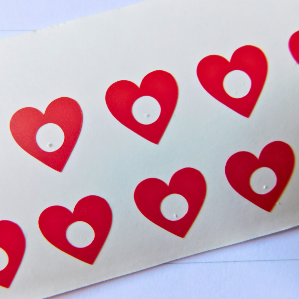 Planchas de 6 × 10 corazones hechos en vinilo autoadhesivo de alta calidad.